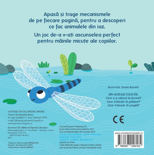 Apasă şi trage mecanismele de pe fiecare pagină, pentru a descoperi ce fac animalele din iaz.