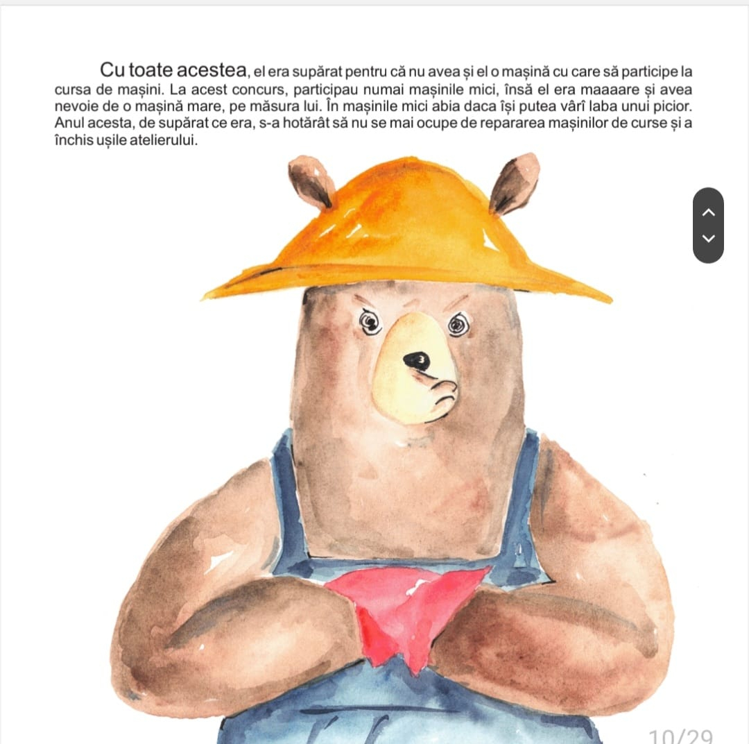 "Ursul Mecanic Auto si Cursa de Masini" – este o poveste captivanta care aduce in prim plan aventura si prietenia. Cartea le arata copiilor ca nimeni nu este singur niciodata si intotdeuna va exista cineva care sa ii sustina si sa ii incurajeze sa infrunte orice provocare si sa-si indeplineasca dorintele.