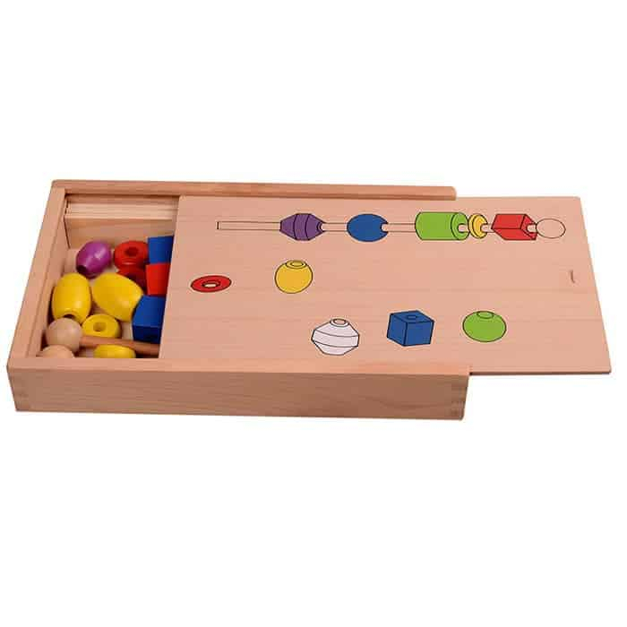 Joc de indemanare, insiruire si sortare dupa model, siruri cu margele din lemn, Montessori, 3 ani+