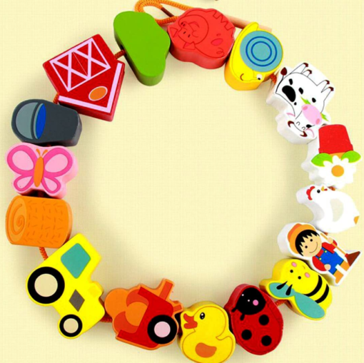 Cei mici isi vor utiliza dexteritatea si imaginatia pentru a insiruit piesele pe snur.