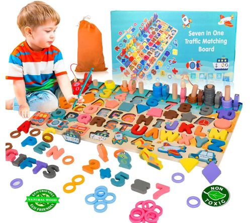 Un super joc educativ cu o multime de functii, toate incluse intr-un joc compact si frumos colorat. Placa de joc este realizată din lemn masiv, frumos colorată, și include: