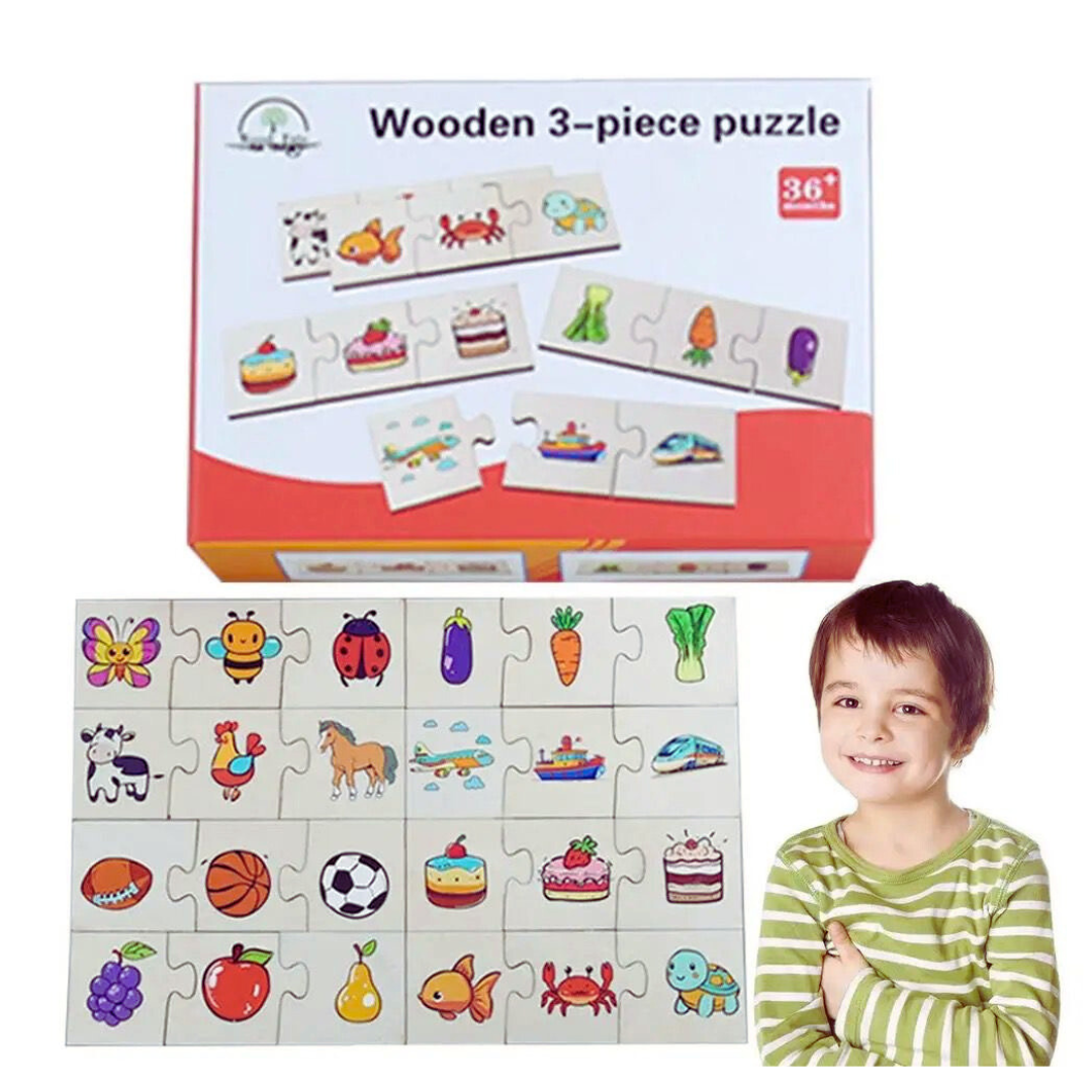 Puzzle de asociere din lemn cu 3 piese, 24 piese