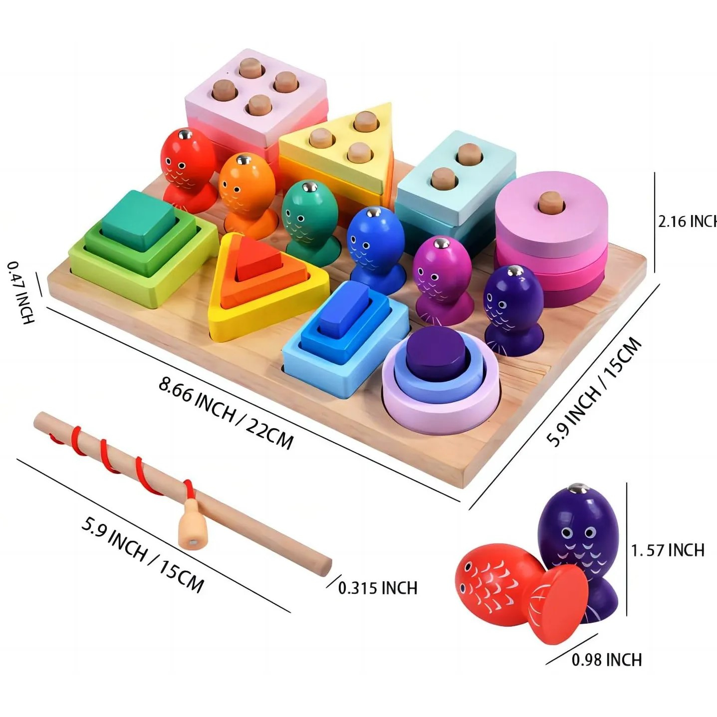 Aceasta jucarie educativa include piese de stivuire pentru dezvoltarea coordonarii ochi-mana. De asemenea, faciliteaza construirea si combinarea creativa a formelor geometrice.