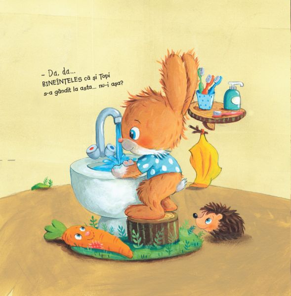 Prin imagini expresive și situații ușor de înțeles, cei mici descoperă cât de important este să se spele pe dinți, pe mâini și să aibă grijă de propriul corp. Povestea îi ajută să privească igiena nu ca pe o obligație, ci ca pe un ritual natural și plăcut.