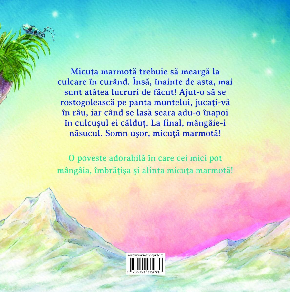 Micuța marmotă trebuie să meargă la culcare în curând. Însă, înainte de asta, mai sunt atâtea lucruri de făcut! Ajut-o să se rostogolească pe panta muntelui, jucați-vă în râu, iar când se lasă seara adu-o înapoi în culcușul ei călduț. La final, mângâie-i năsucul. Somn ușor, micuță marmotă!